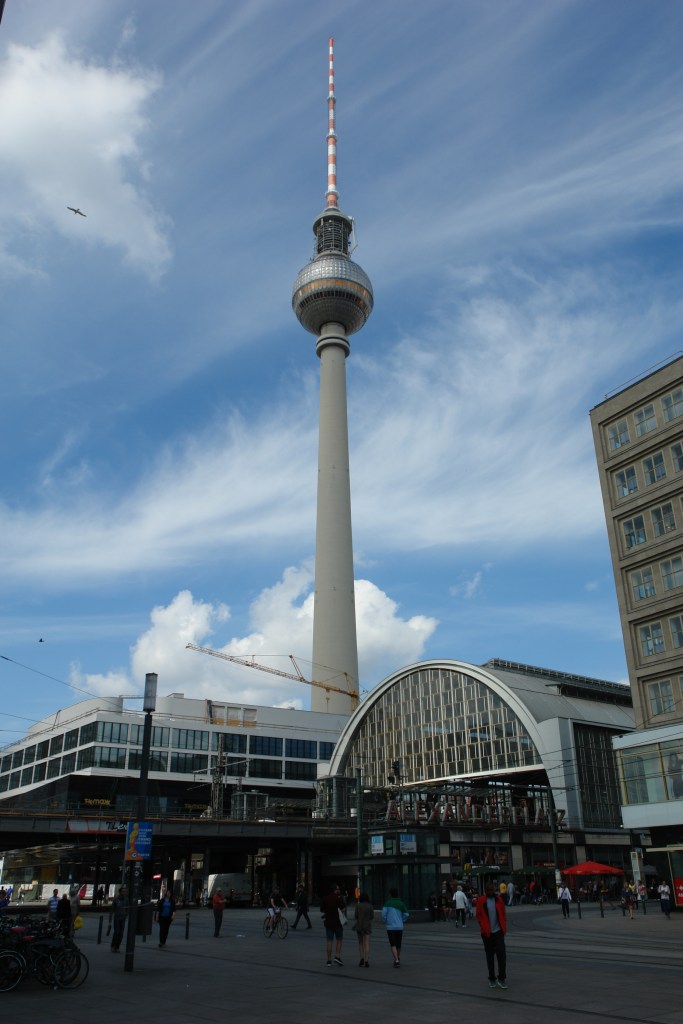 La Torre de la Televisión de Berlín, la “Fernsehturm”, fue construida por la RDA en 1969 y fue hecha para mostrar la superioridad del comunismo sobre el capitalismo. Tiene 368 metros de altura, siendo así el edificio más alto de Alemania. Fue construida por un equipo de arquitectos, Fritz Dieter y Günter entre ellos, sin embargo, la torre colosal fue ideada mucho antes por Hermann Henselmann, planificador del Karl-Marx-Allee.