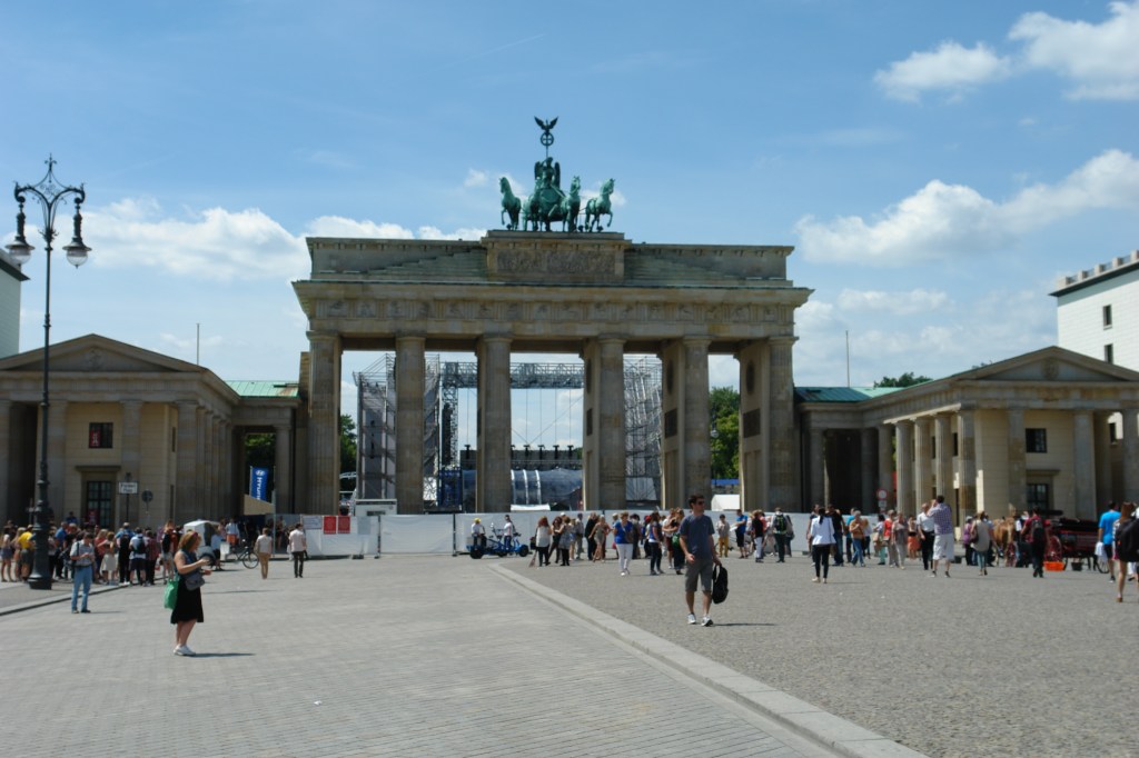 La Puerta de Brandeburgo o la Brandenburger Tor es una de las puertas antiguas de entrada a Berlín. Fue inaugurada en 1791 y simboliza el triunfo de la paz sobre las armas. Es de estilo neoclasico y tiene 26 metros de altura. Fue coronada por la Diosa de la Victoria de cobre sobre un carro tirado por 4 caballos. La puerta actual es una copia ya que la original quedó destruida en la Segunda Guerra Mundial.