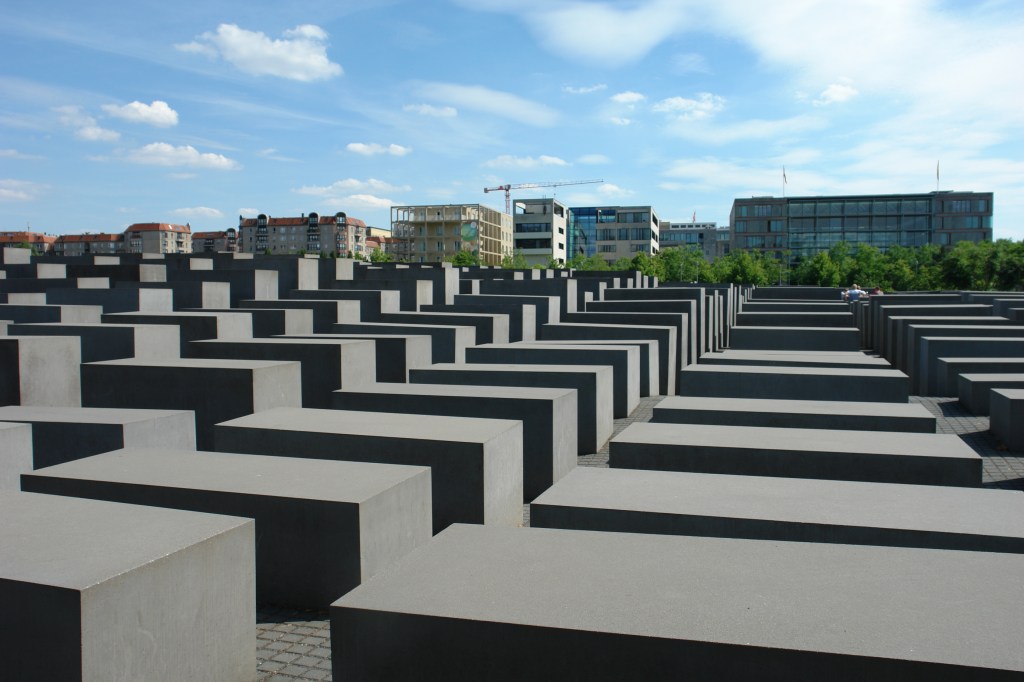 El monumento fue construido entre 2003 y 2005 en memoria de los judíos asesinados en Europa. Está diseñado por el arquitecto Peter Eisenmann y ocupa un espacio de 19.000 metros. El monumento son bloques de cemento por los cuales se puede pasear entre ellos. Debajo del monumento encontramos en centro de información donde podemos ver una exposición de la política de exterminio entre 1933-1945 donde se pueden leer testimonios del genocidio.
