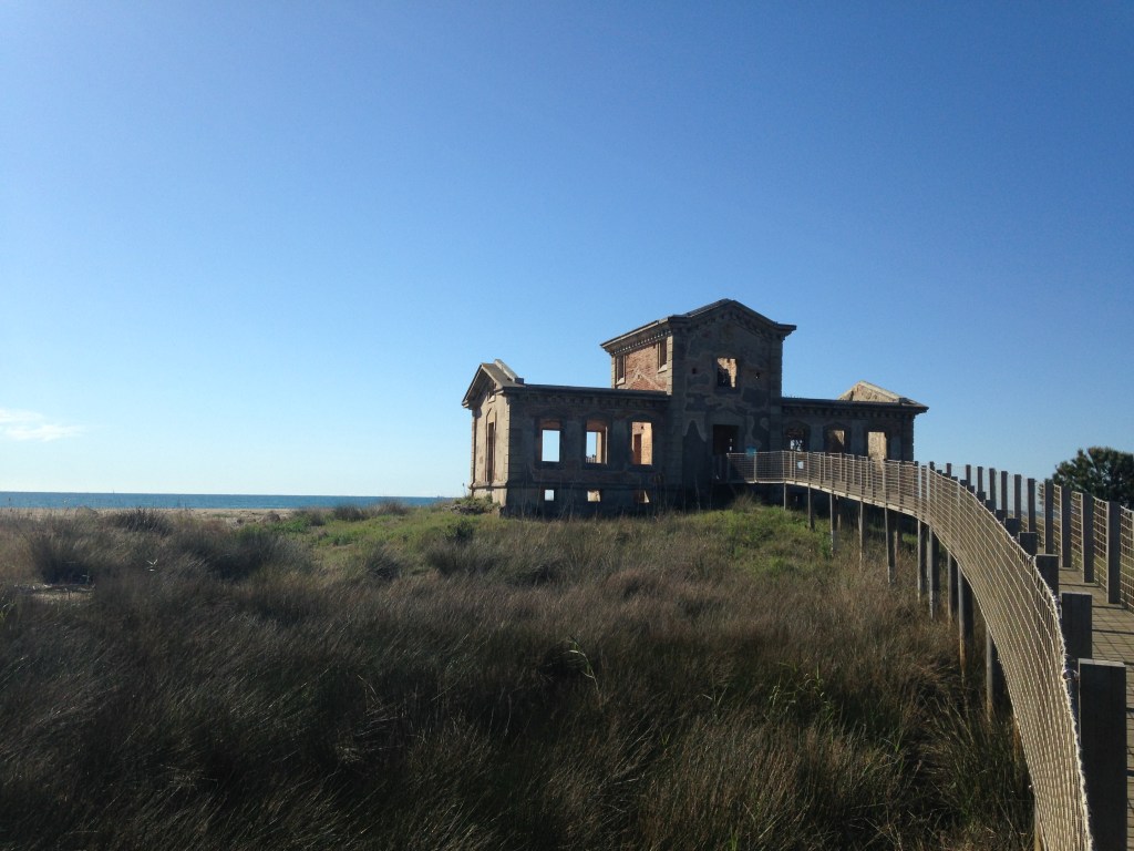 Una vez llegados a la costa, continuamos a mano derecha y llegaremos a la abandonada Antiga Caserna dels Carrabiners, construida en 1844 y cuyo objetivo era vigilar la costa, rescate de naufragios y vigilar el contrabando.