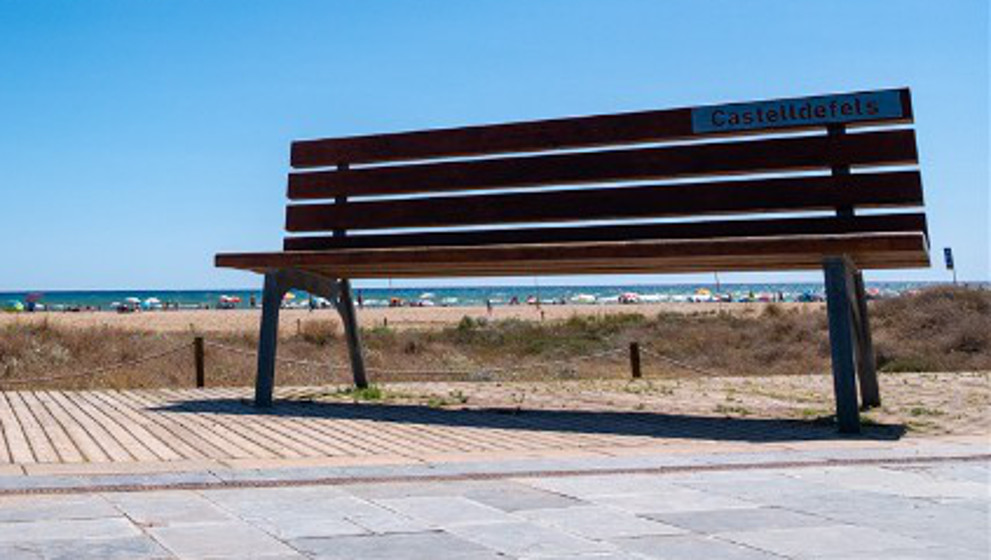 Uno de los puntos más atractivos, y más si vamos con niños pequeños, es el banco gigante. Tiene 5 metros de largo por 1,2 metros de altura del asiento. Este se encuentra en el mismo paseo, a la altura de la calle 11, al lado de la oficina de Turismo de Castelldefels.