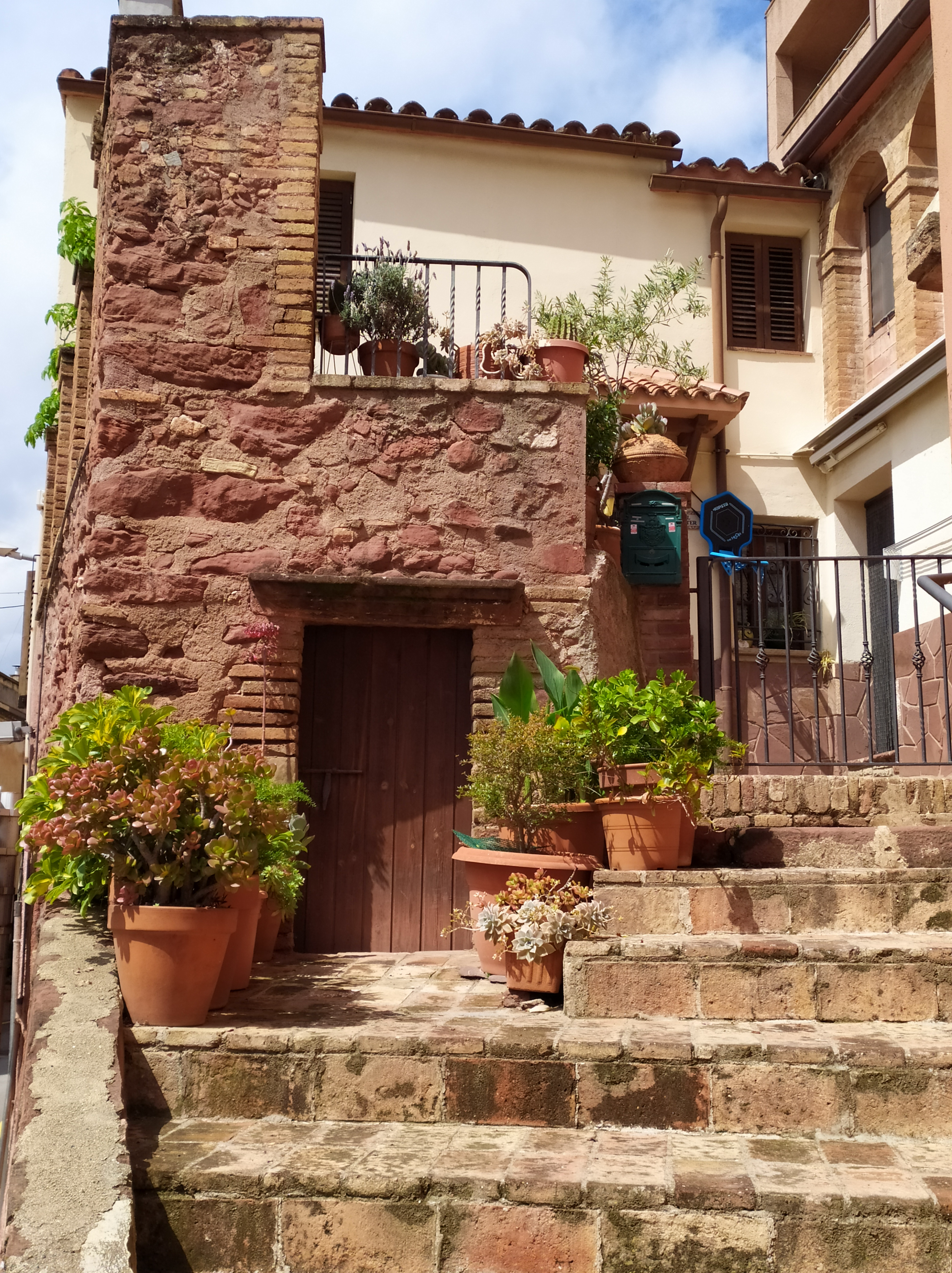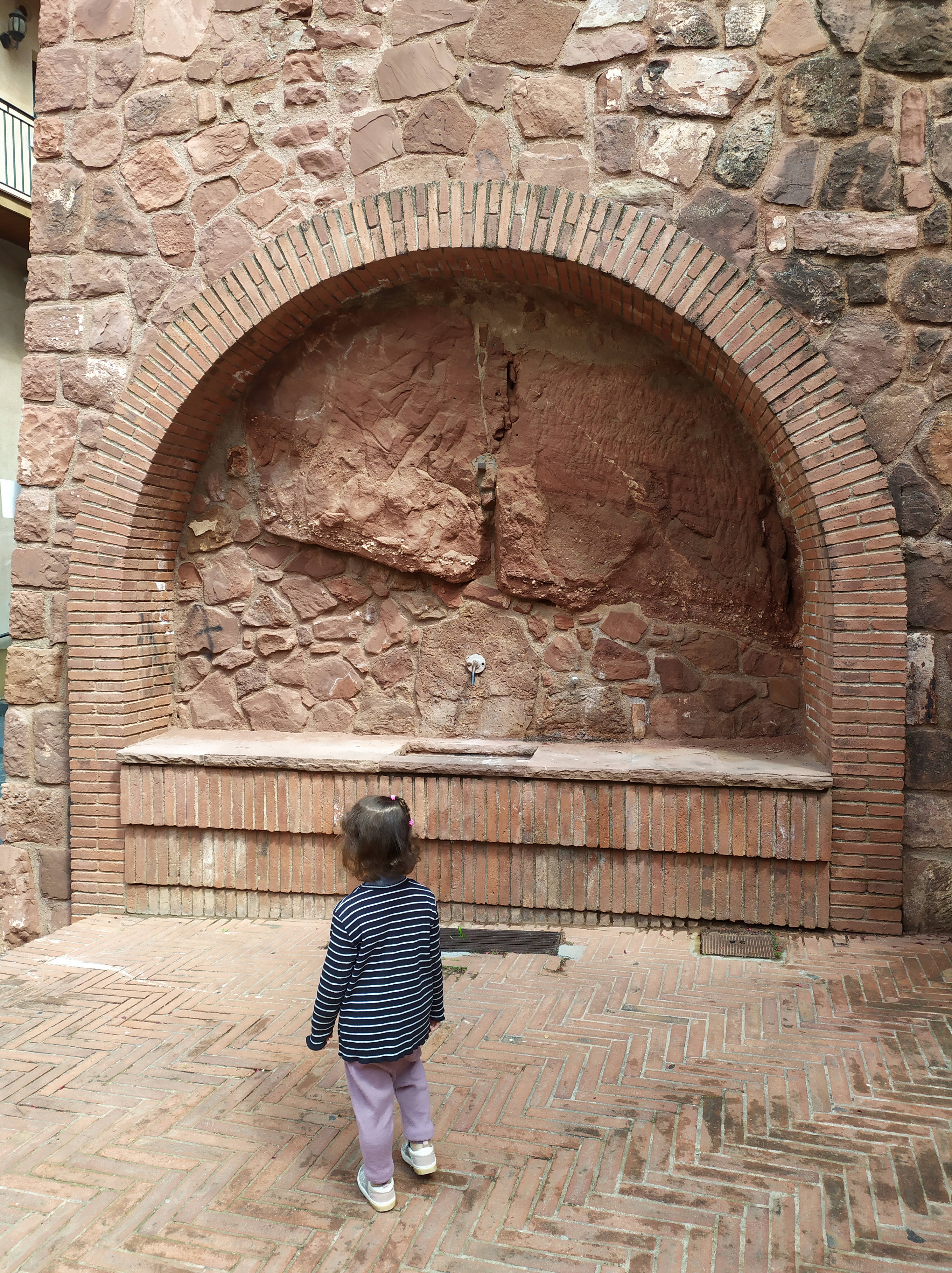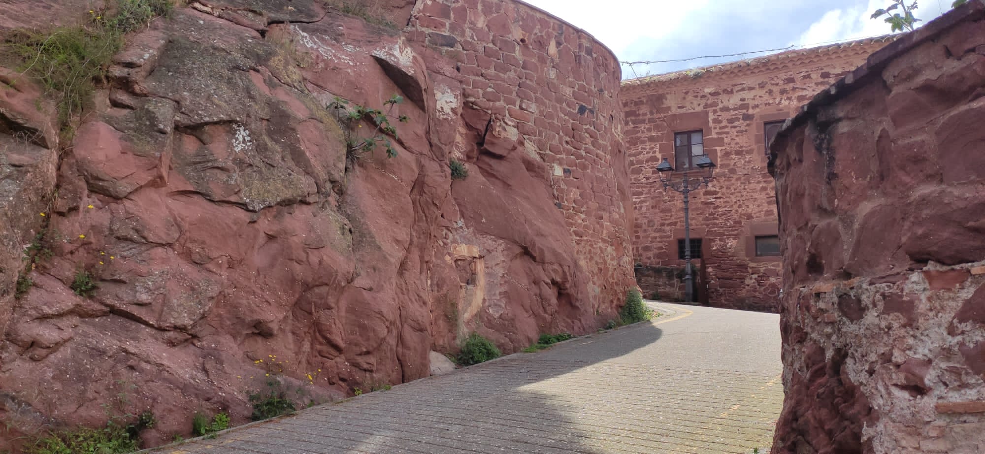 Si callejeamos por el pueblo antiguo veremos que gran parte de las casas están construidas de color rojizo, el típico color de la piedra de la zona. Una calle con pendiente cruza todo el pueblo de punta a punta.