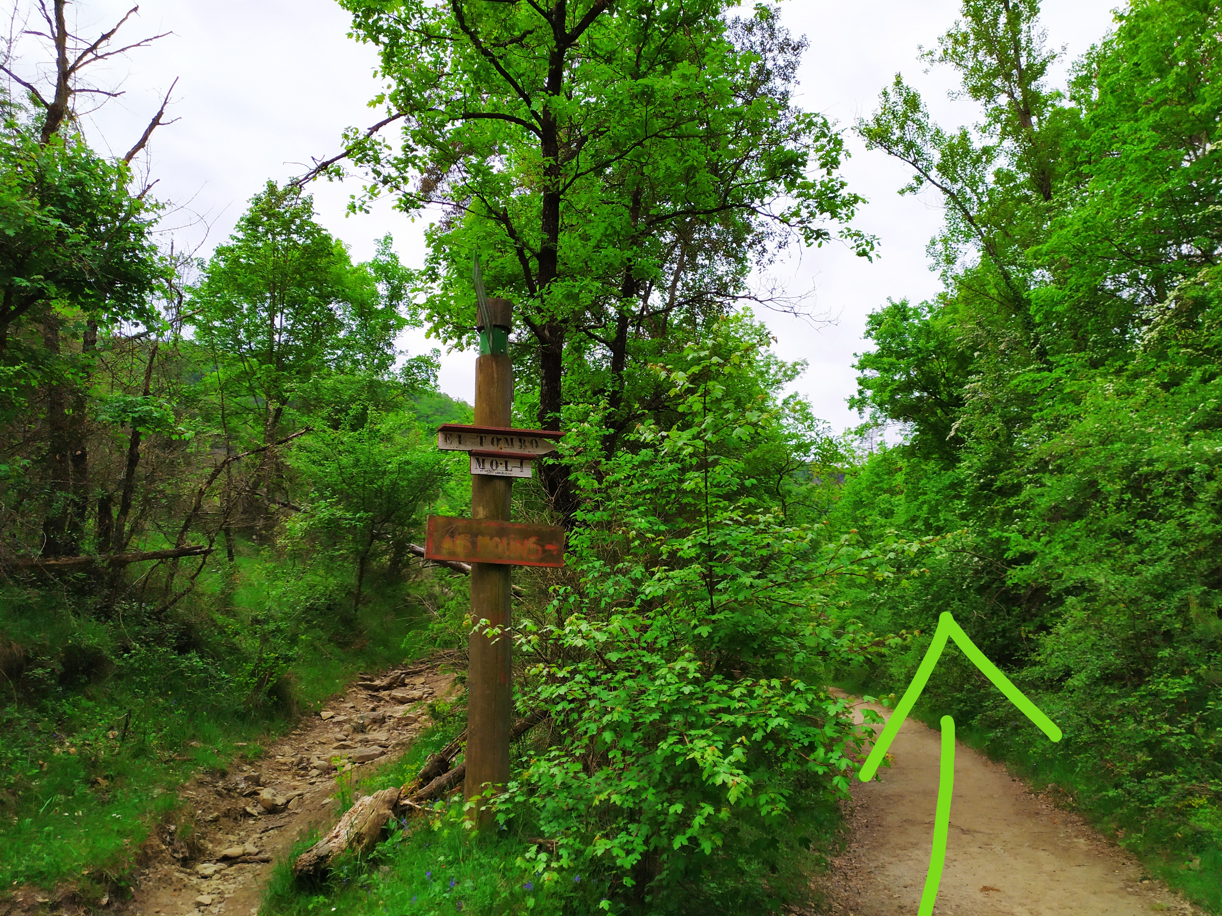 Prácticamente todo el camino está señalizado. El paisaje es precioso. Veremos varios cruces pero siempre tenemos que seguir las indicaciones hacia el Salt.
