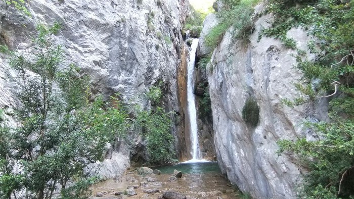 Deshacemos la ruta hasta el desvío y continuamos el sendero hacia arriba. En unos 20 minutos llegamos al salto del agua de Els Empedrats, cruzando antes dos veces el río.