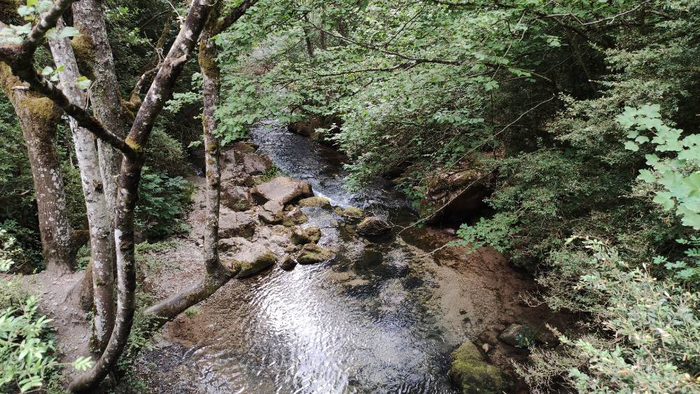 El camino está bastante señalizado con marcas amarillas y blancas, y transcurre por un camino muy agradable, con bastantes sombras, vegetación, río y pozas.