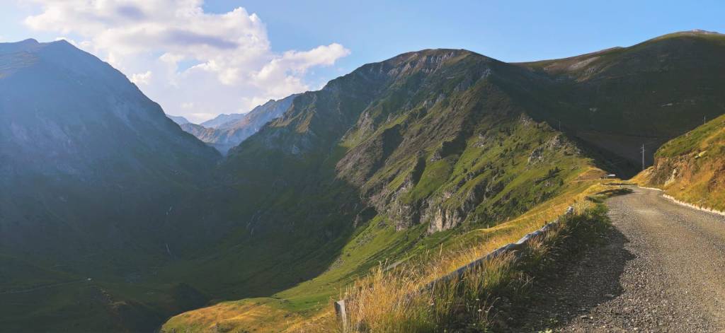 La carretera empieza con una pista que cruza diversas granjas des de el mismo pueblo de Aneto y va ascendiendo por una ladera. En lo alto de esta ladera veremos una de las imágenes más espectaculares que podemos contemplar de la Vall de Barravés. Seguiremos por este camino, que se adentra por la montaña, primero por una carretera más verde y a medida que ascendemos se transforma en tonos marrones. Pronto nos encontraremos con un antiguo refugio abandonado, que también había sido un antiguo destacamento militar. Para gente como nosotros, gustosos de edificios abandonados, nos dio para un rato de fotos y de paisajes desde dentro del edificio.