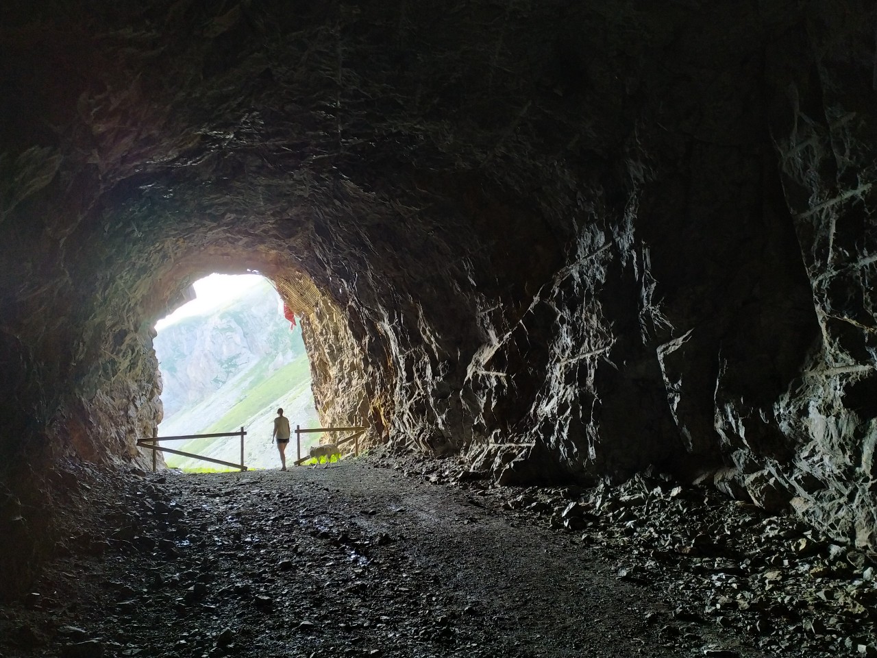 Una vez superado este tramo, entraremos en dos túneles con ventanas hechos de hormigón, con un sistema constructivo que nos evoca claramente los años 50-60. Pero el plato fuerte llega al final, donde cruzaremos un extenso túnel que está sin asfaltar y con las paredes desnudas, en el que encontraremos algunos surcos en medio del recorrido que debemos esquivar (no os preocupéis, es fácil). Por cierto, el túnel tiene puertas y siempre da la sensación que alguien las cerrará estando tú en medio de la montaña. No os tiene que preocupar, es mejor tomárselo como un punto pictórico del recorrido. Superado este túnel, viene la sorpresa: el embalse de Llauset, con su presa sosteniendo las cristalinas aguas del embalse en el que te bañarías gustosamente sino estuviera a esas temperaturas.