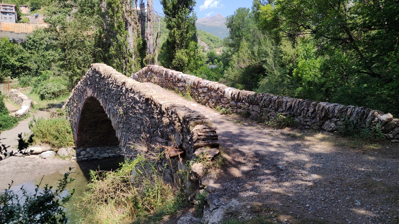 De hecho, a unos 3 km de El Pont de Suert, a la altura de Castilló de Tor, encontraremos que el camino pasa al lado del puente medieval del Remei y una ermita, en un sitio donde el río puede cubrirte y así pegarte un buen chapuzón (y frío). Algunos jóvenes de la zona se tiran de lo alto de este puente, pero no lo hagas, es peligroso.