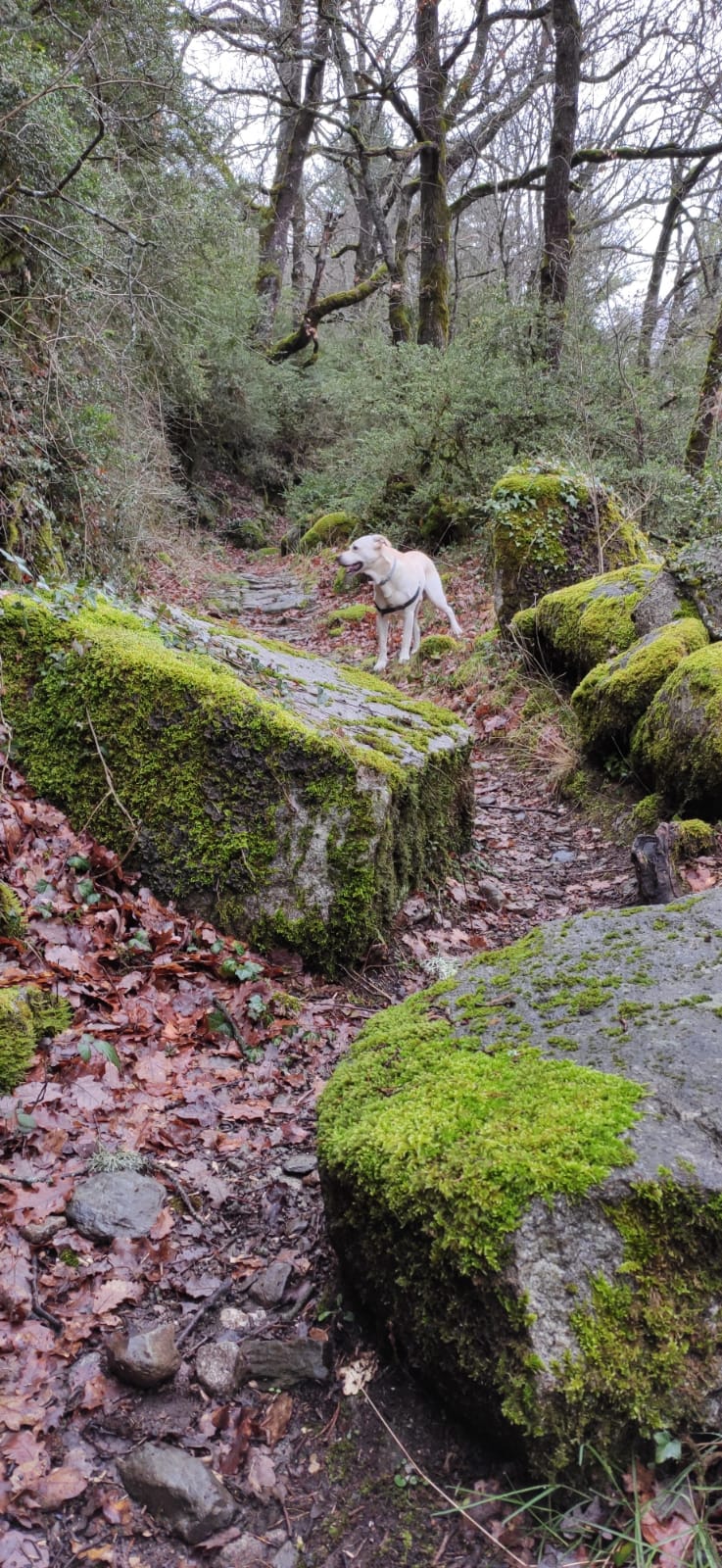 La ruta son 950 metros, todo en subida, pero no se hace pesado, así que creemos que es de dificultad baja. La ruta es un camino estrecho que acaba en una pista forestal y se hace perfectamente en 45 minutos.