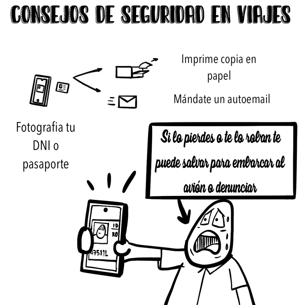 Aunque seamos unos cracks con nuestra memoria, siempre podemos perder la documentación básica (DNI, pasaporte, tarjeta sanitaria…). Si antes de salir de casa hacemos una foto de estos documentos, siempre tendremos este comodín y, creedme, ayudará a la persona con quien debamos interactuar (personal de tierra de aeropuertos, policias, administrativos de hospitales…).