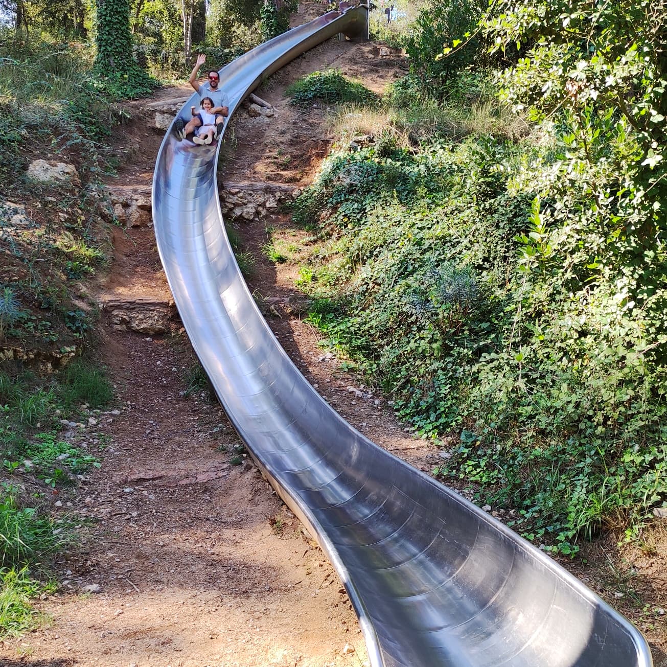 Este es un parque al que prácticamente no nos cansamos de ir. Se encuentra en Sant Cugat, en un lugar bastante accesible en coche y con fácil aparcamiento. Es el parque urbano más grande de Sant Cugat. Su principal atracción: sus 4 toboganes gigantes.