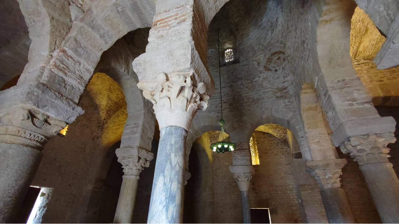 De la segunda iglesia, Sant Miquel, simplemente quedamos enamorados. No se parece en nada a lo que hayamos visto hasta ahora ¡En nada! Ocho columnas con capiteles distintos de origen visigodo rodean lo que el arquitecto Puig i Cadafalch interpretó como un baptisterio. Muchas palabras para deciros básicamente: id y visitadla, es simplemente encantadora.