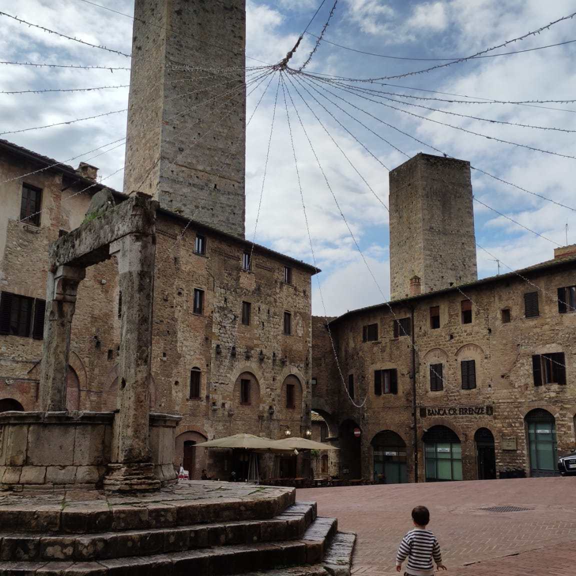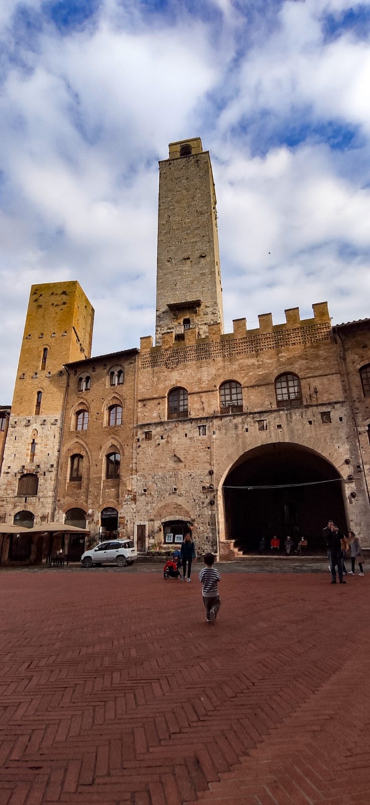 Lo que vemos hoy nos dejó con la boca abierta, en breves palabras. Pero si queréis un poco más de detalle os contaremos que San Gimignano nos lleva directamente a la Edad Media, con callejuelas empedradas por las que afortunadamente está bastante prohibido circular con coche (solo algunos vecinos y comercios).