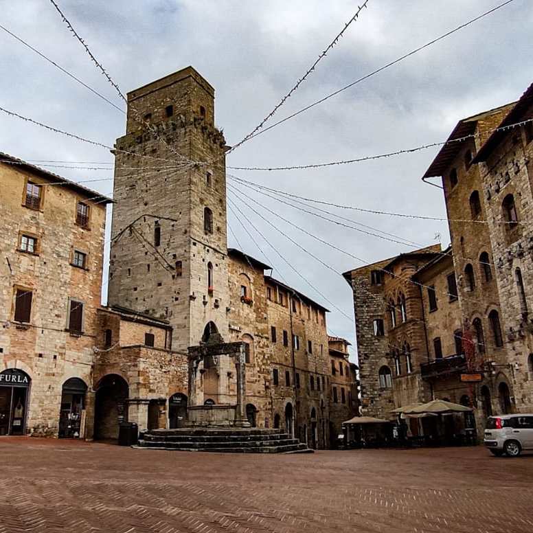 Cruzas un edificio desde la Piazza della Cisterna y ¡pam! ¡Otra plaza espectacular! En este caso encontramos algunos edificios que destacan por sobre del resto por lo impresionante de sus formas. Estamos hablando del mismo Duomo di San Gimignano, del Palazzo Comunale con su Torre Grossa o del Teatro dei Leggieri con su gran porche y su Torre Rognosa.
