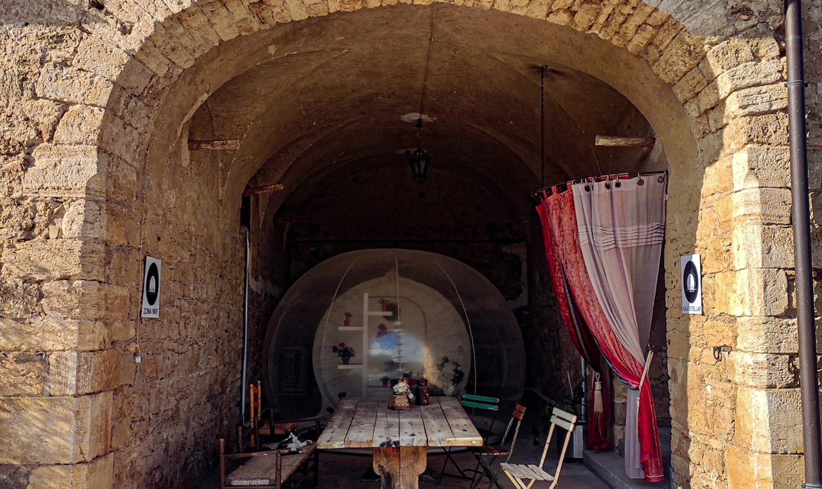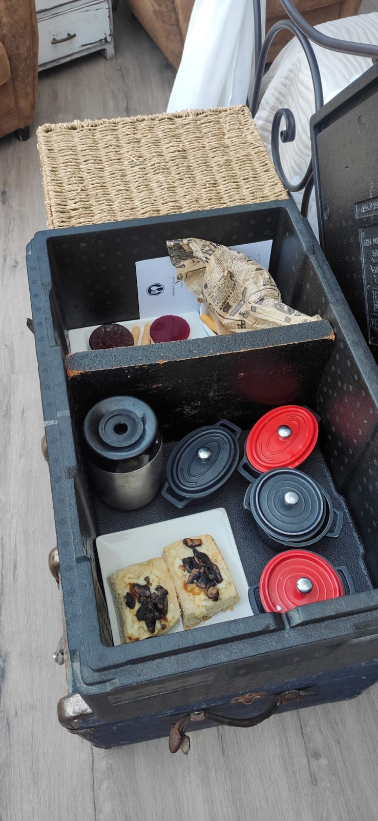 Hasta antes del covid, las comidas se servían en la masía. Pero, tras la pandemia, los responsables vieron que los clientes preferían hacer su vida aislados en su burbuja, literal. Por ello, actualmente solo los residentes de la masía comen en ella, mientras que “los burbujeros” tienen un servicio que les trae la comida. Tanto la cena como el desayuno te lo dejan en la compuerta.