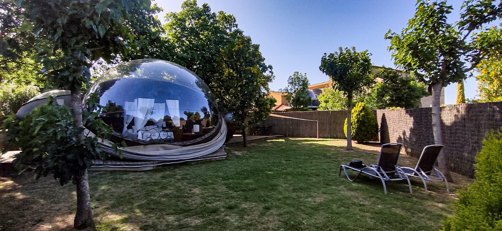 - ¿Hay privacidad con todo abierto? Pues la verdad es que sí. Aún con todo abierto, nadie te ve, pues las burbujas están orientadas de tal modo y a tal distancia que no tienes el vecino espiando. Además, el jardín privado que dispone cada una está rodeado de una valla que también da privacidad.
