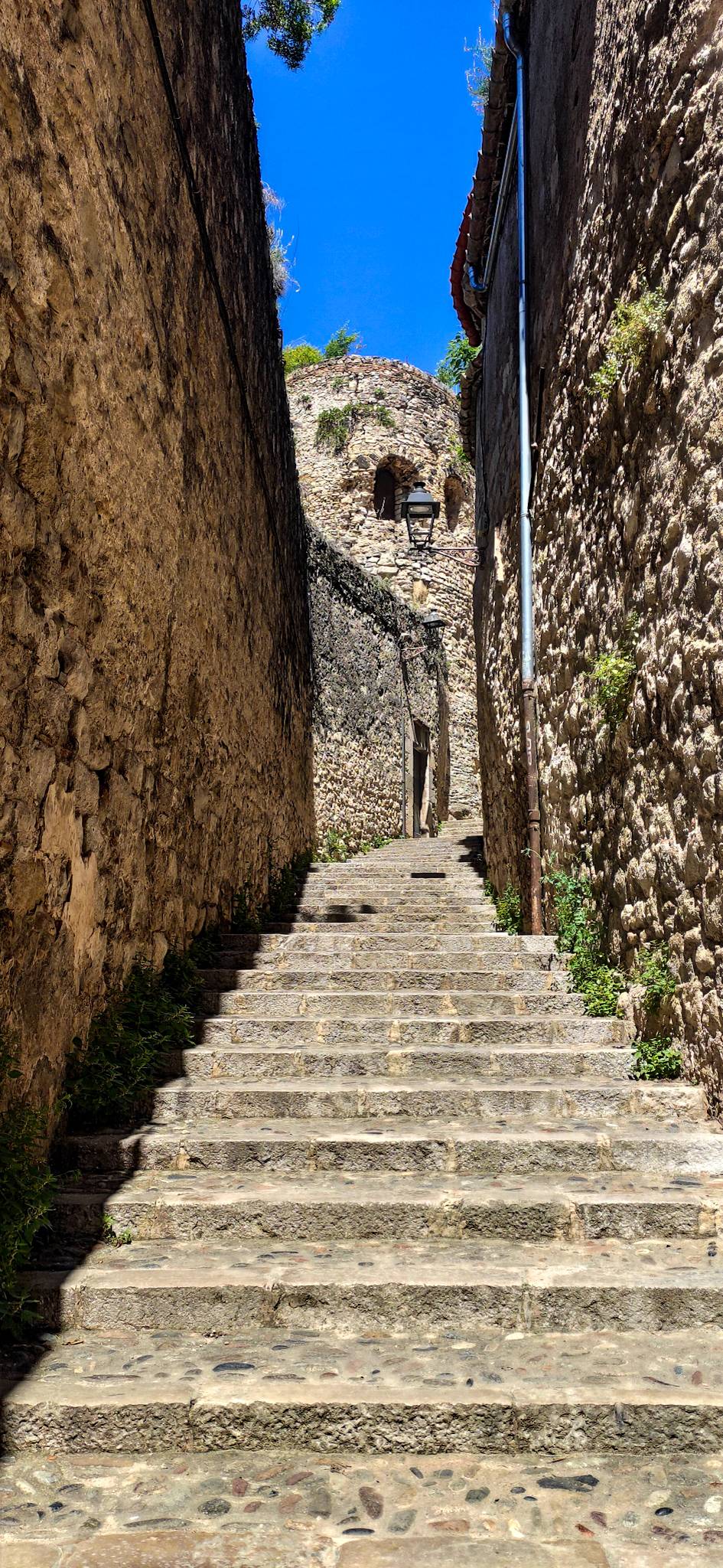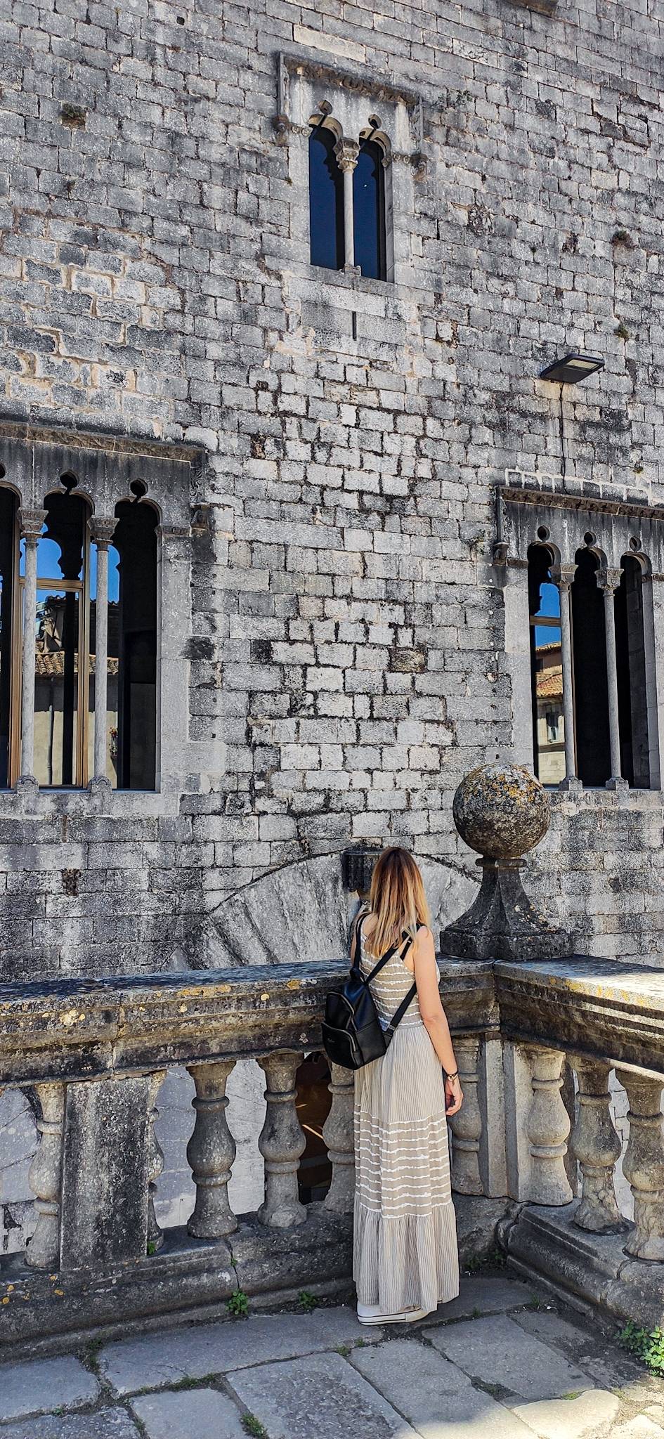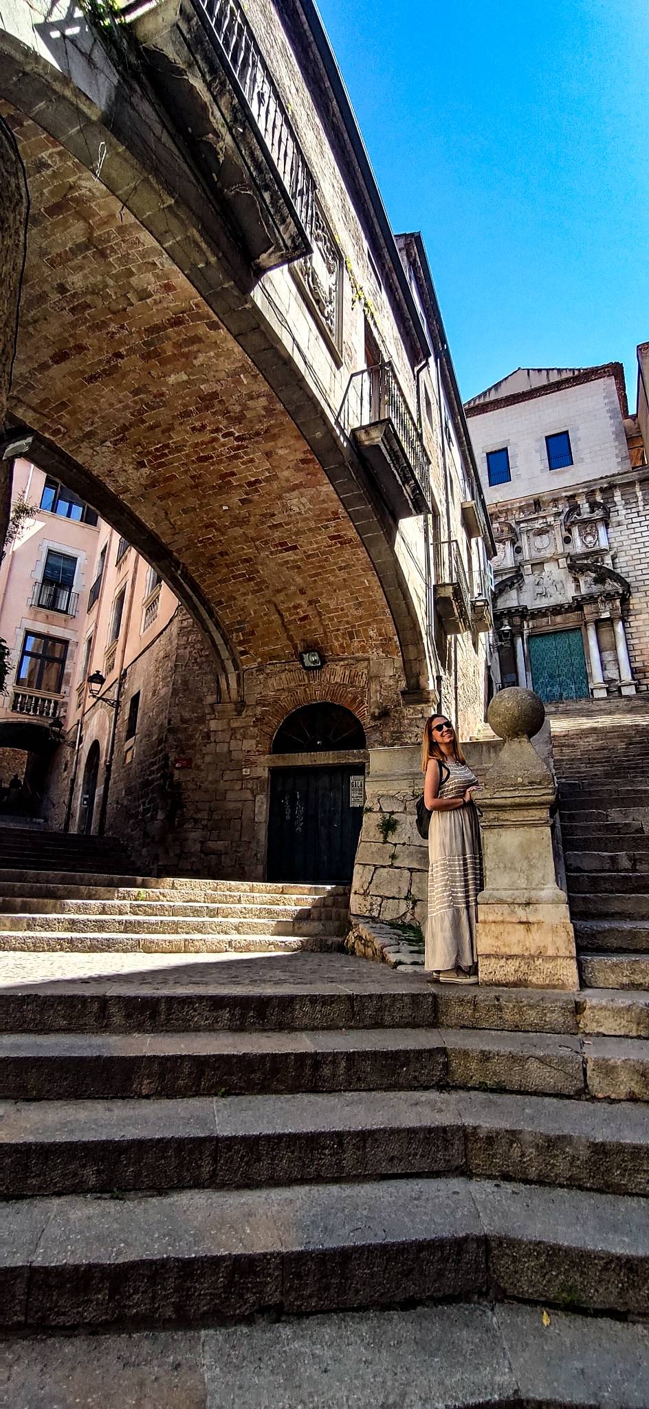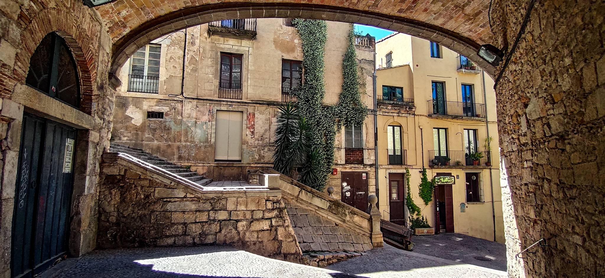 La Casa Agullana y la Pujada de Sant Domènec es otro de esos espacios que piden fotos a gritos. Un inmenso arco urbano que cruza una calle a un lado y una gran escalinata con la Iglesia de Sant Martí Sacosta al fondo. Es tan bonito que también Juego de Tronos lo incluyó en sus escenarios.