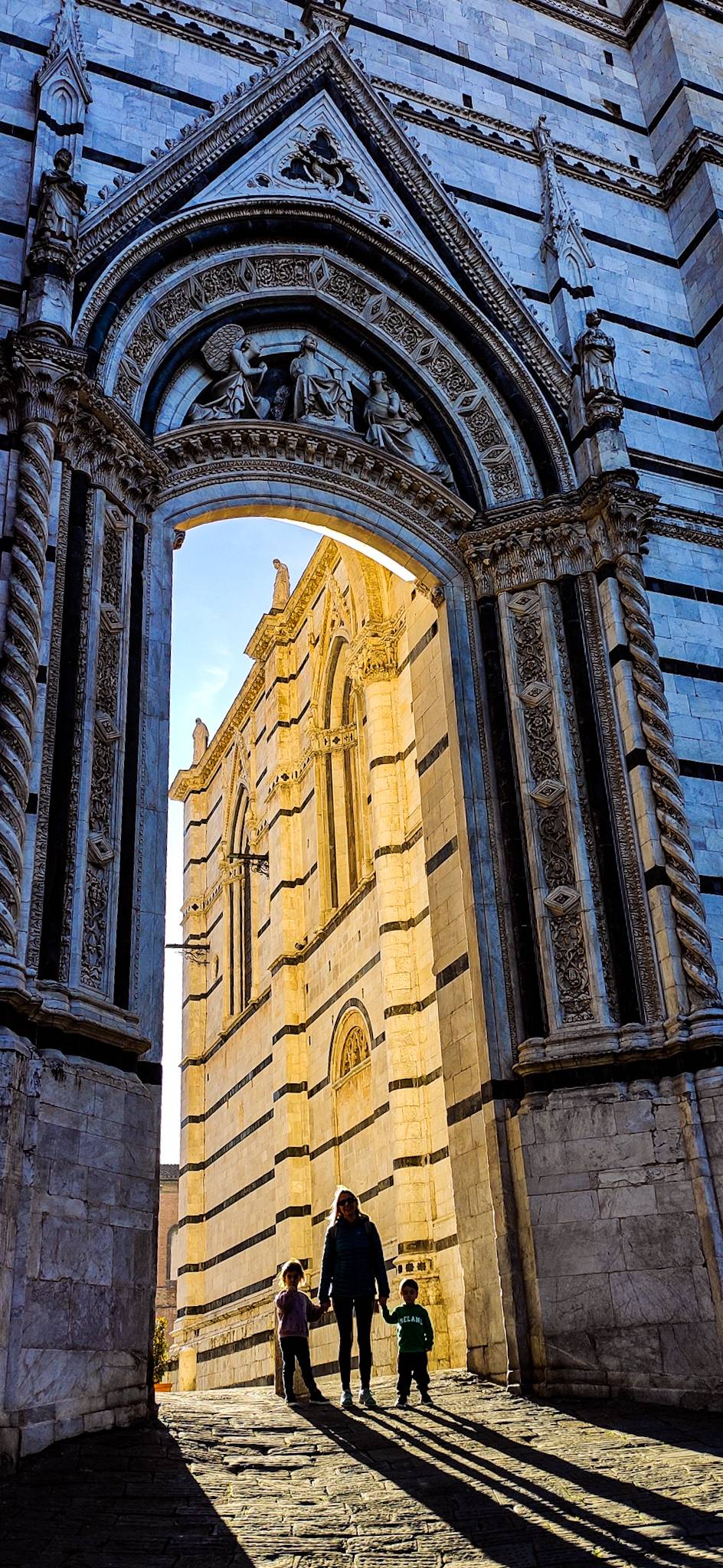 Si nos centramos en él, vemos una Catedral de estilo románico y gótico con los detalles de la zona que tanto nos gustan: líneas horizontales destacando el mármol verde sobre el blanco, tan típicos de la Toscana. Tanto la fachada como el conjunto resultan espectaculares. Y, aunque nos parezca inmensa, en realidad hubo planes para triplicar su tamaño, pero la peste de 1348 azotó medio mundo e hizo que se abandonaran.