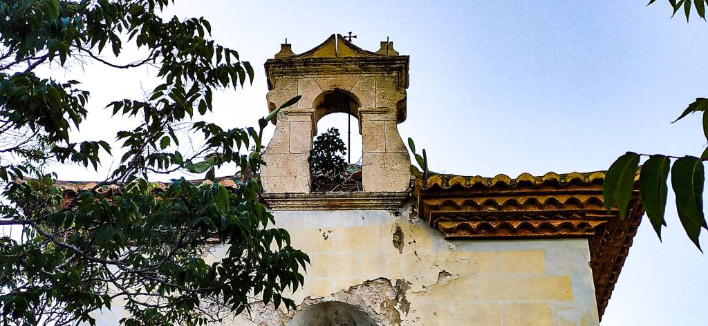El edificio, de grandes dimensiones, está compuesto principalmente por la casa y una capilla. ¿Se puede acceder? Oficialmente no. Pero el jardín no está ni vallado y la puerta principal de la casa, que está tapiada, tiene una abertura suficiente para entrar cualquiera. De hecho, se nota que ha entrado cualquiera.