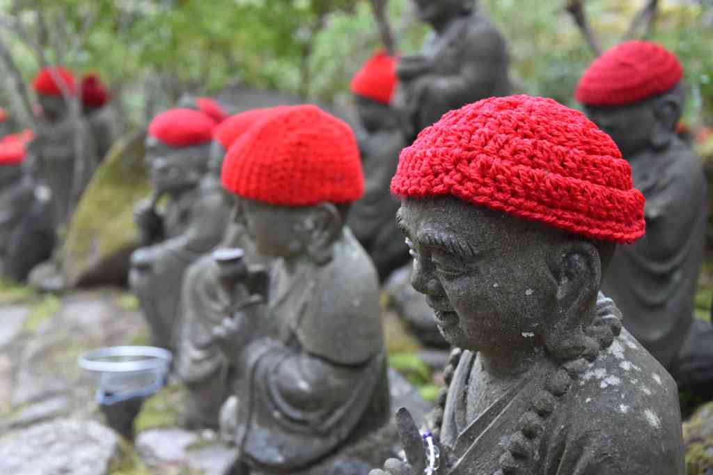 Los budas pequeñitos con gorritos de lana que ves en el templo Daishoin son en realidad representaciones de Jizō, el protector de los niños, viajeros y almas perdidas en el budismo japonés. Los gorritos y baberos de colores no son simples accesorios de moda espiritual: son ofrendas hechas por familias que buscan protección para sus hijos, especialmente por el alma de niños que han fallecido o como gesto de gratitud por un favor concedido. Además, en invierno, los fieles abrigan a los Jizō para que «no pasen frío», en un acto de ternura que hace que el templo parezca más una guardería de deidades que un sitio solemne.