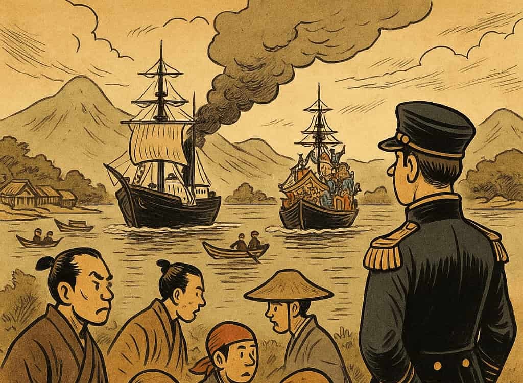 Cuando Perry llegó con su flota estadounidense (con vapor, humo, cañones y actitud de “firma esto o veremos”), Japón se dio cuenta de que el mundo había cambiado… y ellos no. En 1854, bajo cierta presión, el shogunato Tokugawa firmó el Tratado de Kanagawa, que abría puertos al comercio estadounidense. Poco después, vendrían tratados similares con otras potencias europeas.