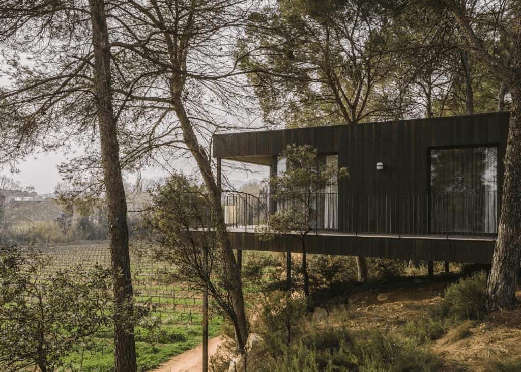 ¿Por qué es raro? Imagina una cabaña de madera, pero olvida el estilo rústico. Estas son estructuras de diseño sostenible ultra-modernas situadas en un bosque de encinas. Lo más curioso es que están elevadas e integradas en la naturaleza de tal manera que parecen formar parte del ecosistema, todo ello a un paso de un castillo del siglo X y con vistas a Montserrat.